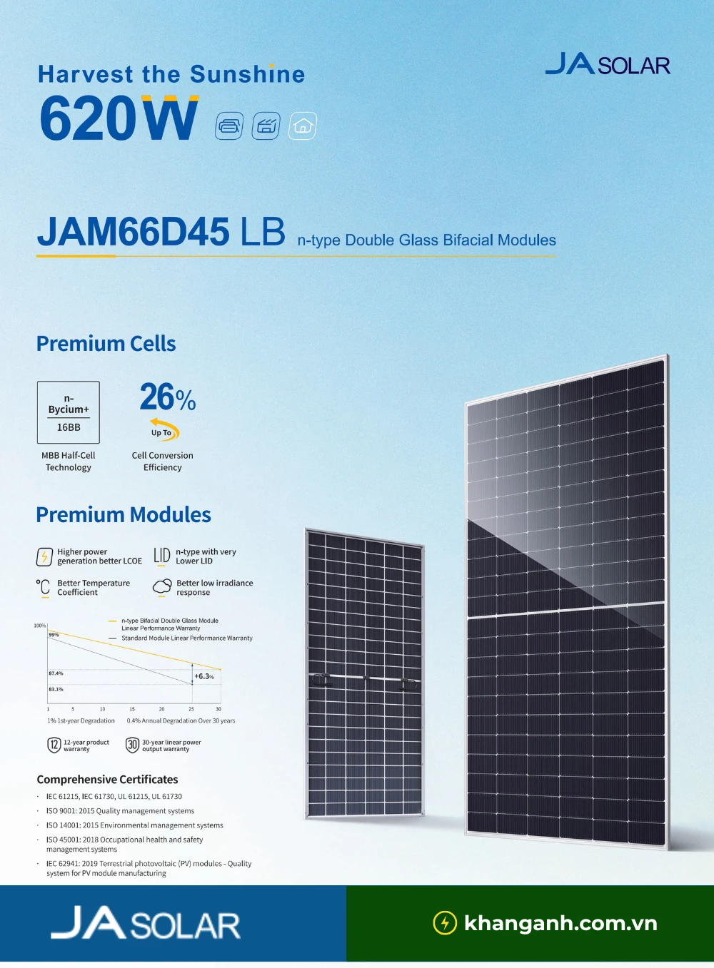 Mã sản phẩm: JAMD66D45LB (JA SOLAR 620W)